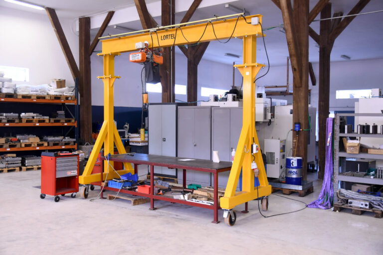 Notre atelier est également équipé d’un pont roulant Lortel d’une capacité de 3,5 tonnes, facilitant la manutention et le déplacement sécurisé des pièces lourdes et des moules volumineux.